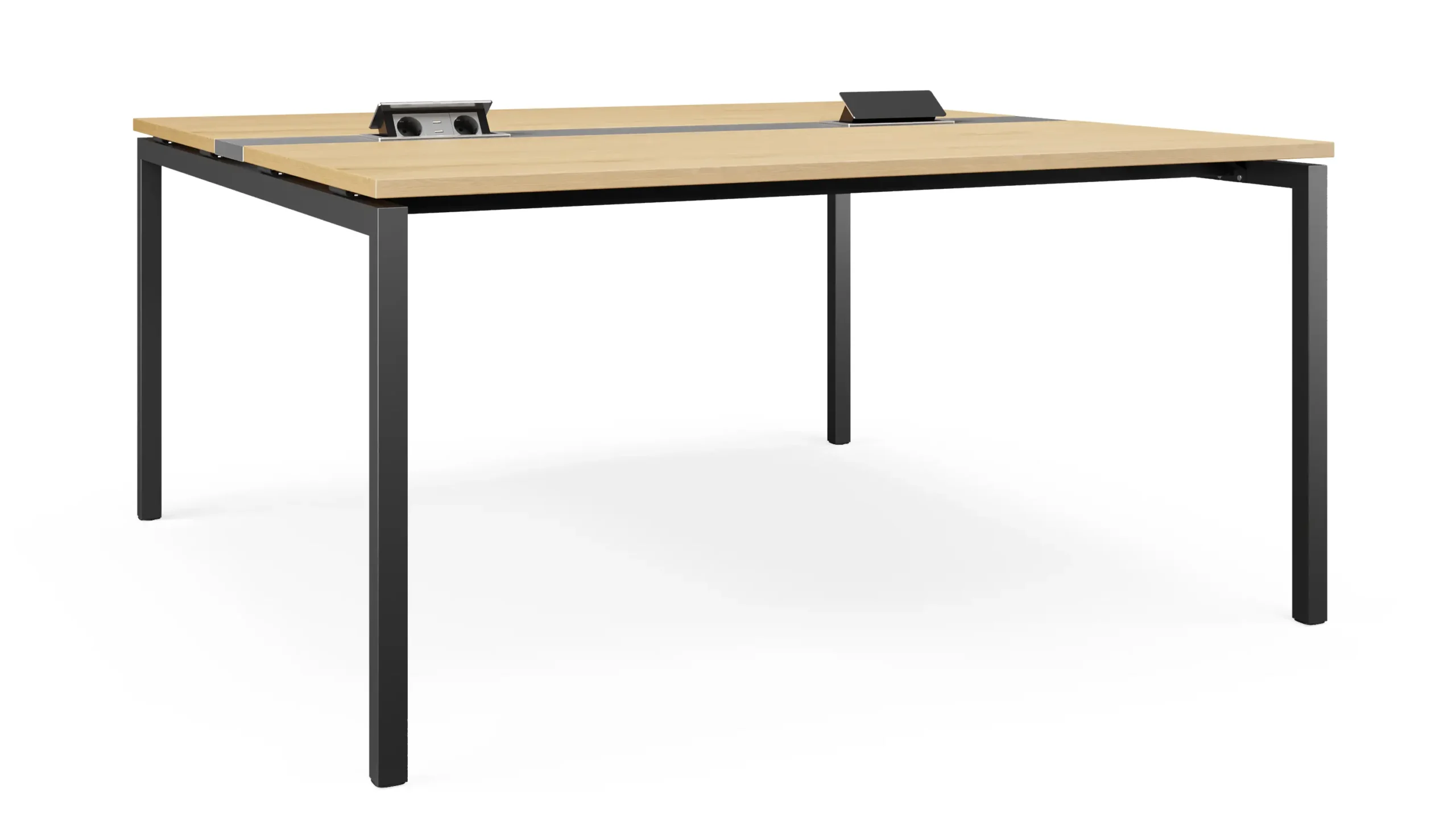 ФАБУЛА — это превосходное сочетание стиля и функциональности. Уникальные П-образные ножки придают столу изысканный вид и обеспечивают прочность и стабильность, a два блока зарядки по центру стола позволяют удобно подключать и заряжать ваши устройства во время встреч и переговоров, обеспечивая комфорт и удобство в использовании.